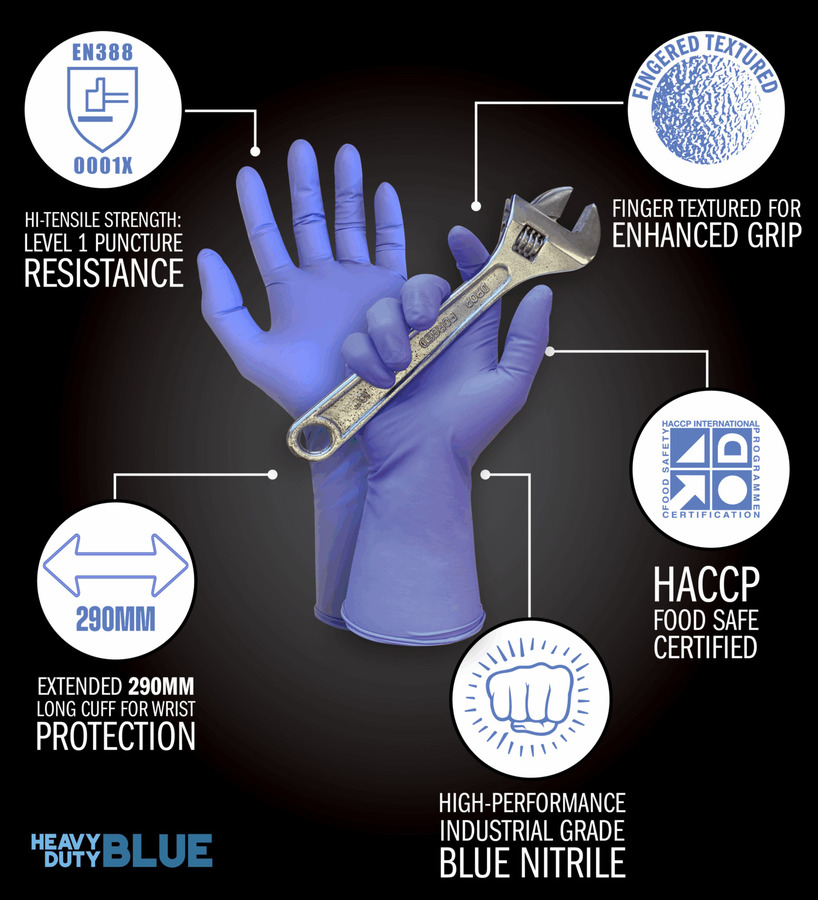 Heavy Duty Blue Nitrile Disposable Gloves