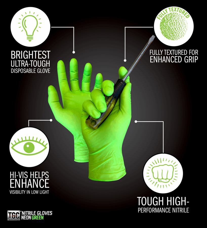 TGC® Neon Green Nitrile Disposable Gloves